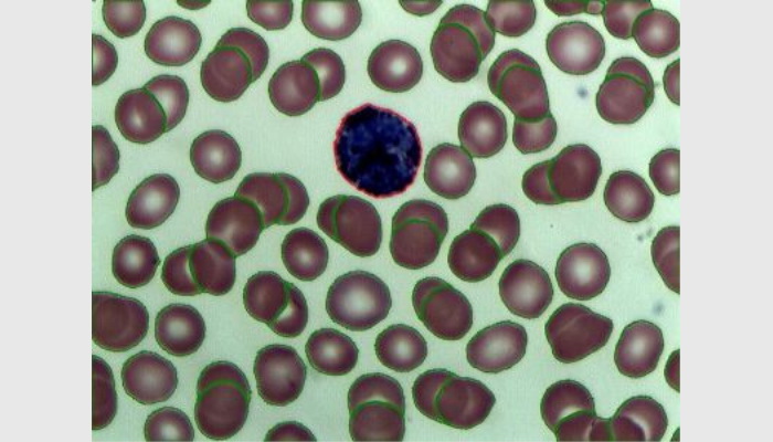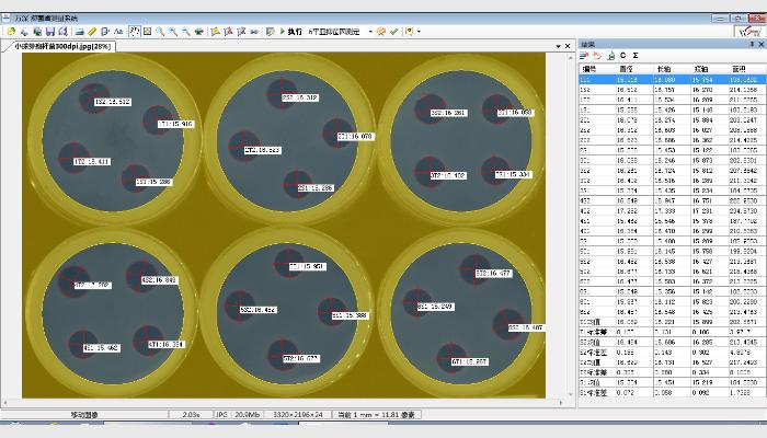 (4)★自動分割長形粘連或圓形粘連目標,自動分類計數(shù)與測量(獲得面積、周長、直徑、主軸、副軸等形態(tài)參數(shù))。