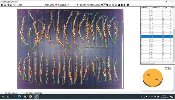 5、★自動數(shù)粒誤差<±2.0%,極少量添加、刪除修正,可達(dá)100%正確。各級枝梗長的自動測量誤差<±1.5mm,可鼠標(biāo)編輯修正以接近100%正確。