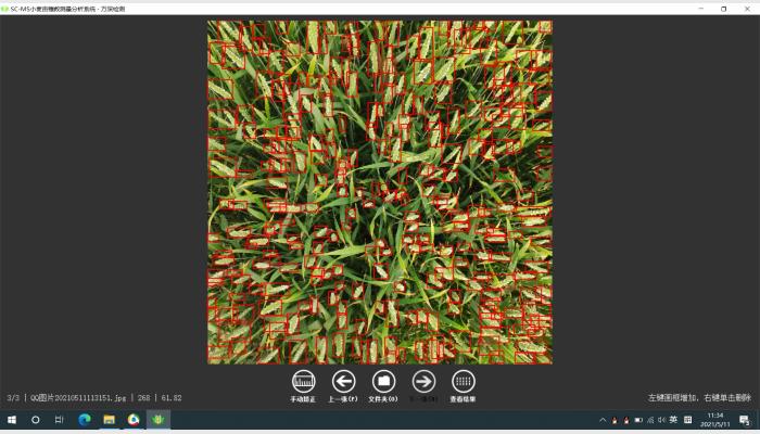 6、★具有遮擋率和靈敏度補(bǔ)償特性,對(duì)小麥在楊花期、灌漿期、半成熟期的數(shù)麥穗誤差<±4%,可縮放圖像查看和點(diǎn)擊修正,以達(dá)100%正確數(shù)穗。