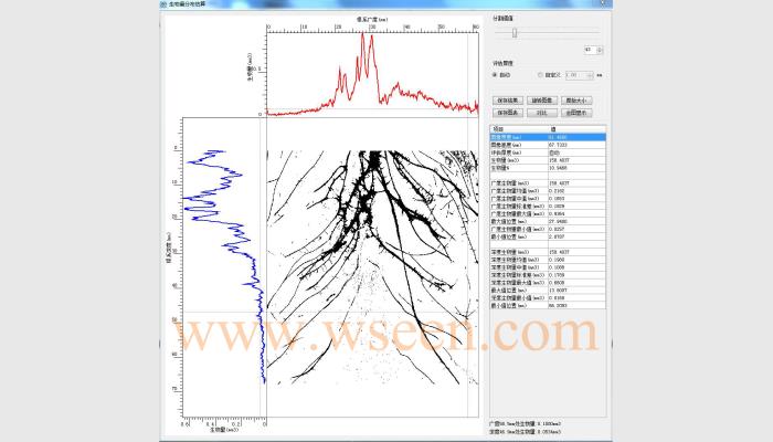 (3)能進(jìn)行根系的顏色分析,確定出根系存活數(shù)量,輸出不同顏色根系的直徑、長度、投影面積、表面積、體積。