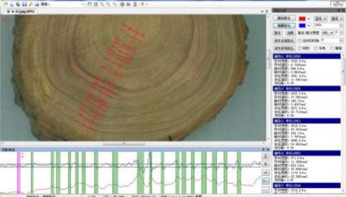 (3)具有【精細(xì)】分析選項(xiàng),可自動(dòng)分析出≤0.2mm寬度的年輪,分析獲得的測(cè)量數(shù)據(jù)具備進(jìn)一步做交叉定年、數(shù)據(jù)分析處理能力。
