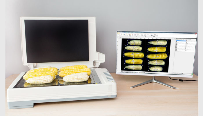 1、配最高分辨率1600dpi × 1600dpi紫光M1彩色掃描儀,掃描分析區(qū)為A3幅面431.8mm×304.8 mm。可同時成像分析10個玉米果穗、35個玉米截面、1000粒左右玉米籽粒。