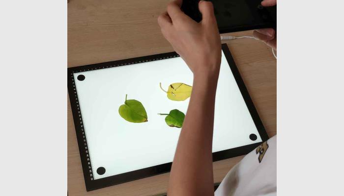 1、配帶移動(dòng)電源輔助背光源板,可野外背光照明3小時(shí)。單次拍照的最大測(cè)量葉片面積520*225mm,自動(dòng)標(biāo)定和自動(dòng)圖像校正。